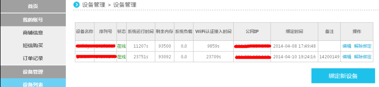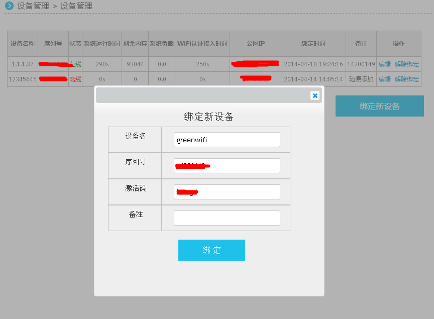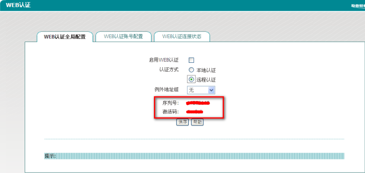 1、从设备WEB认证配置页面获取设备序列号和激活码